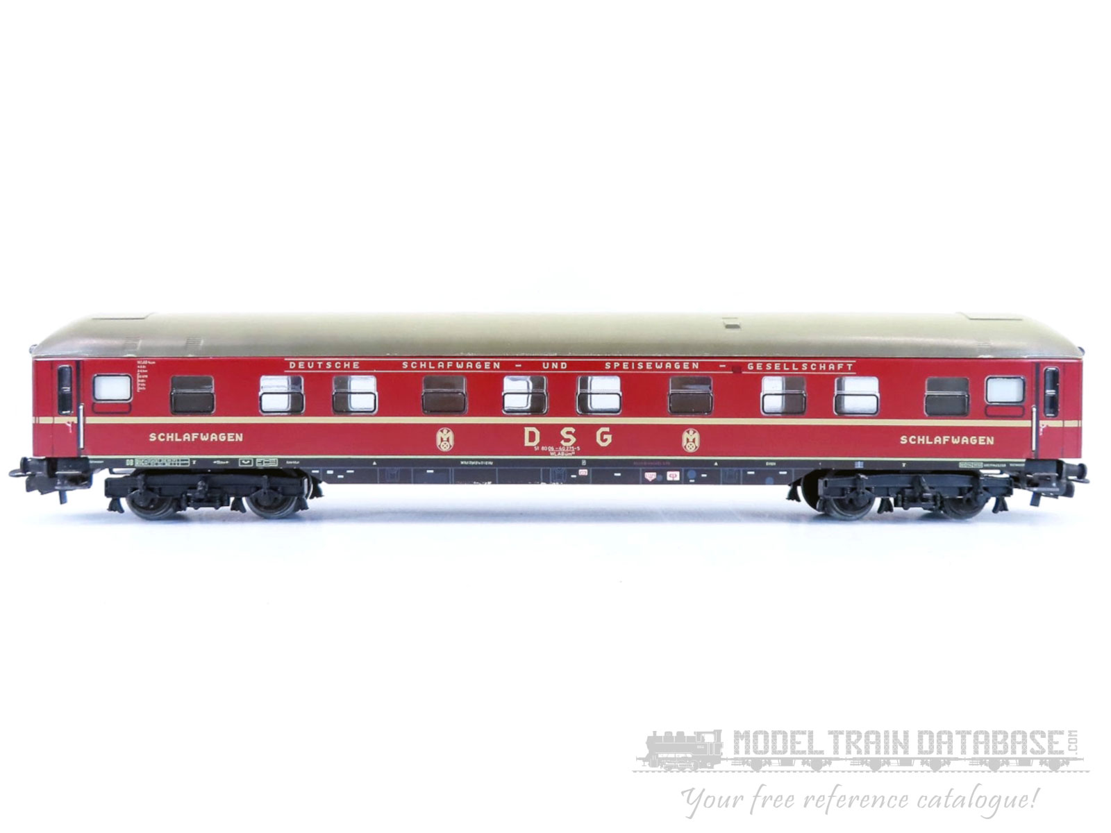Sleeping Car of the German Sleeping and Dining Car Company (DSG). Type WLABm174 (ex-WLABüm174). 33200 class sleeper. 1st and 2nd class. RELEX-couplers. Length 24 cm (9-1/2"). Accepts interior lighting set 7320.