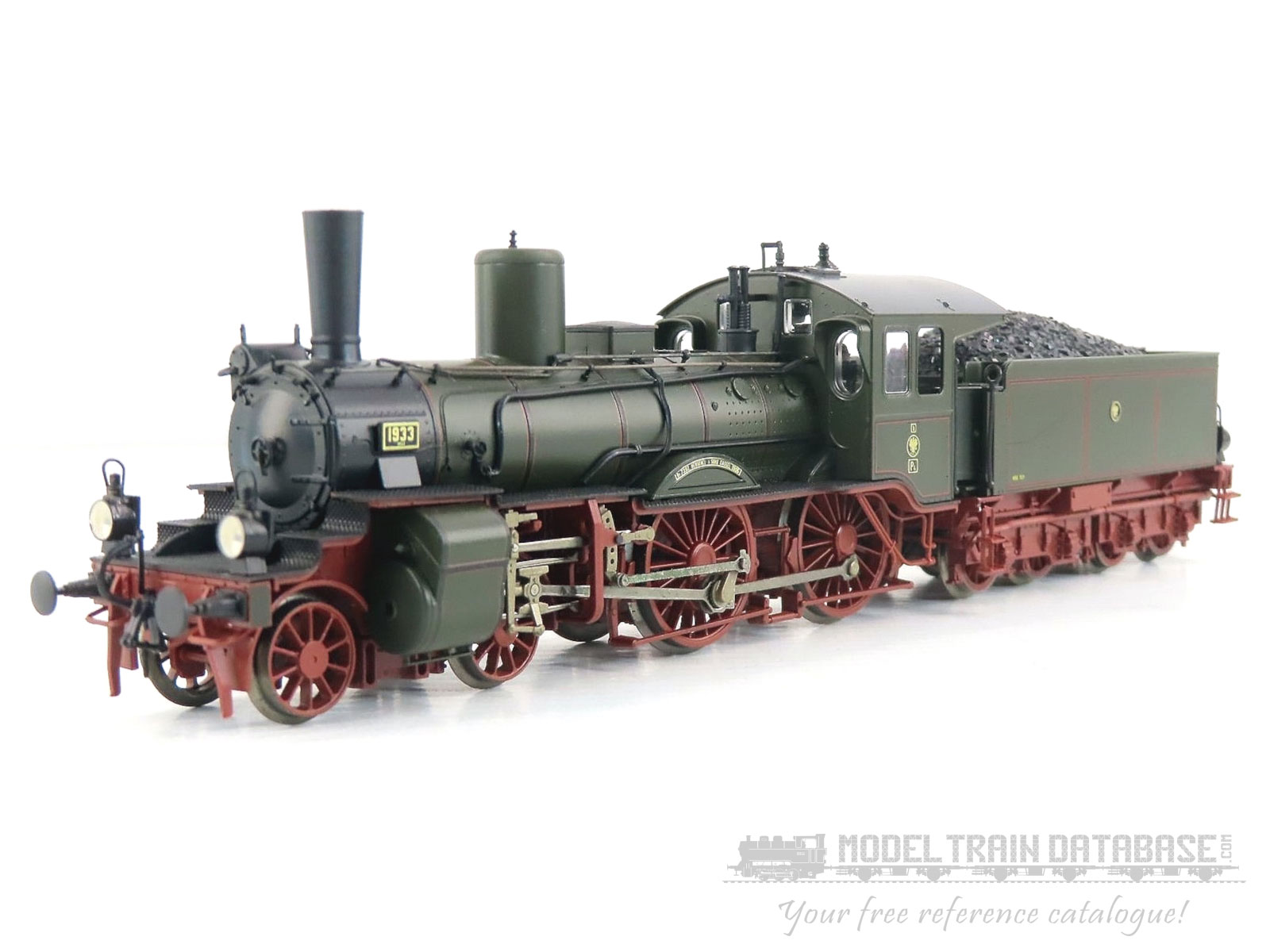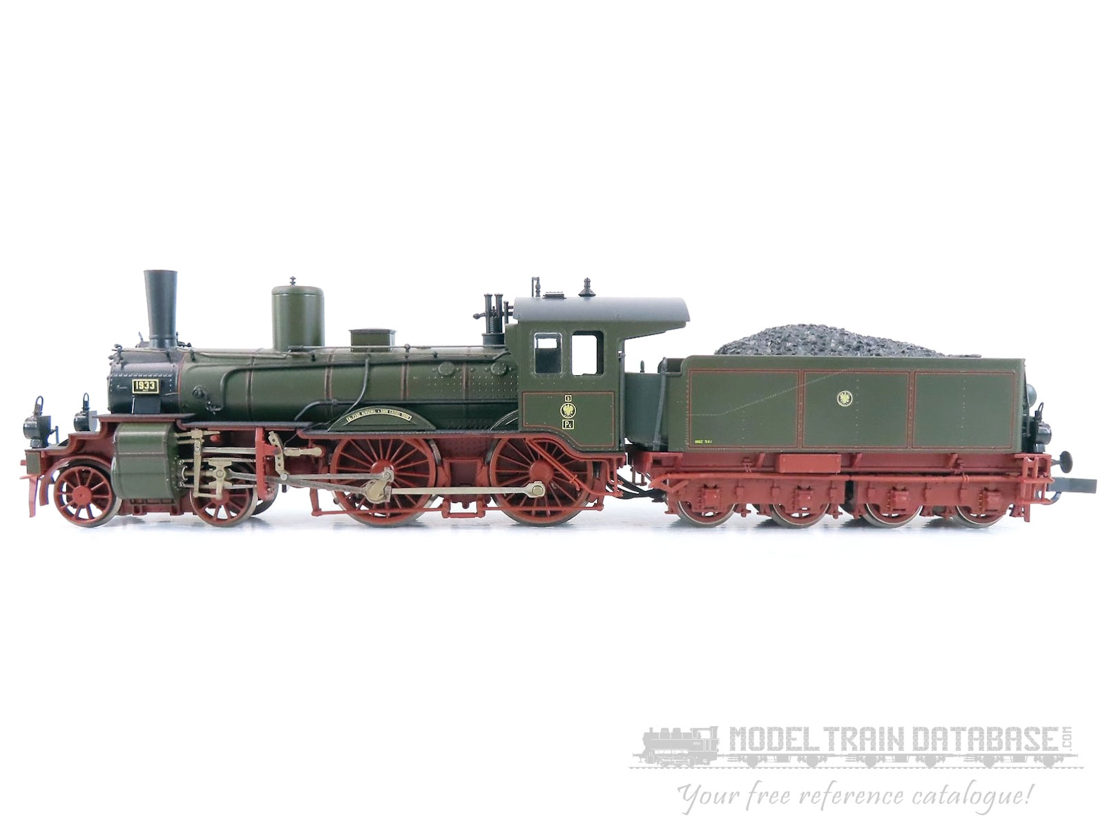 Steam locomotive P42, Royal Prussian Railway Administration (K.P.E.V.), wheel arrangement 4-4. Body plastic, frame die-cast metal, motor with flywheel, drive on 2 tender axles and via shaft on both engine drive axles, four wheel with traction tires, suitable for radius R2 and larger. With load-regulated decoder. Total length 203 mm.